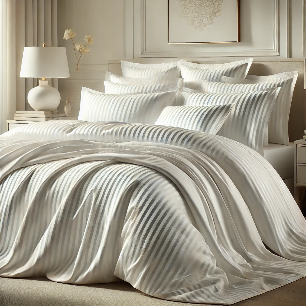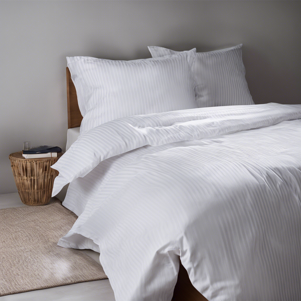 Biała pościel bawełniana z adamaszku z pasami o szerokości 2 cm to elegancki i luksusowy dodatek do sypialni, doskonały zarówno dla hoteli, jak i prywatnych domów. Ta wyjątkowa pościel łączy w sobie wysoką jakość materiałów z subtelnością wzoru, tworząc atmosferę komfortu i stylu.