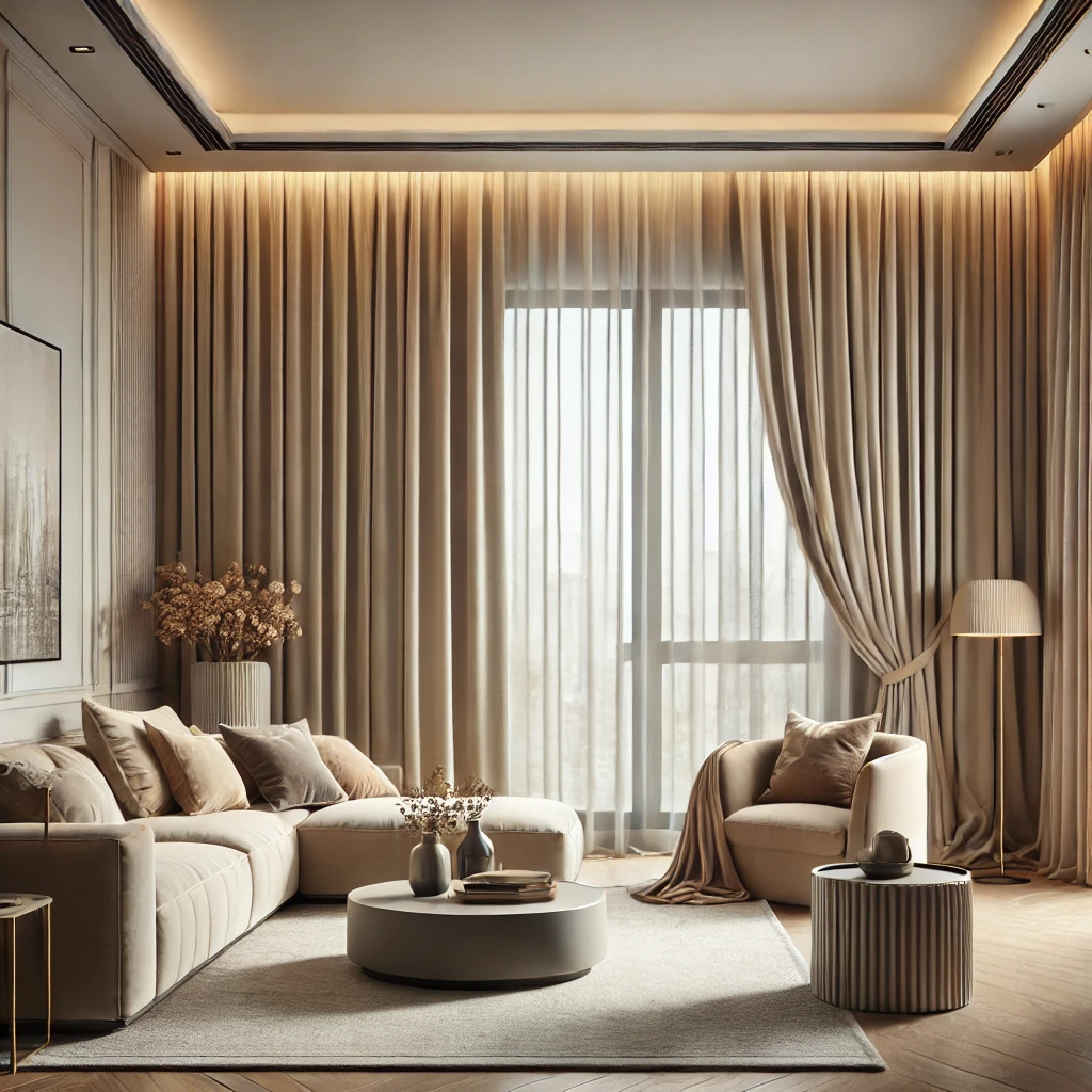 Zasłony pięknie się układają, nadając wnętrzu przytulności i nowoczesnego charakteru. Uniwersalny odcień jasnego beżu harmonizuje zarówno z jasnymi, jak i ciemniejszymi aranżacjami, pasując do stylu klasycznego, nowoczesnego oraz skandynawskiego.