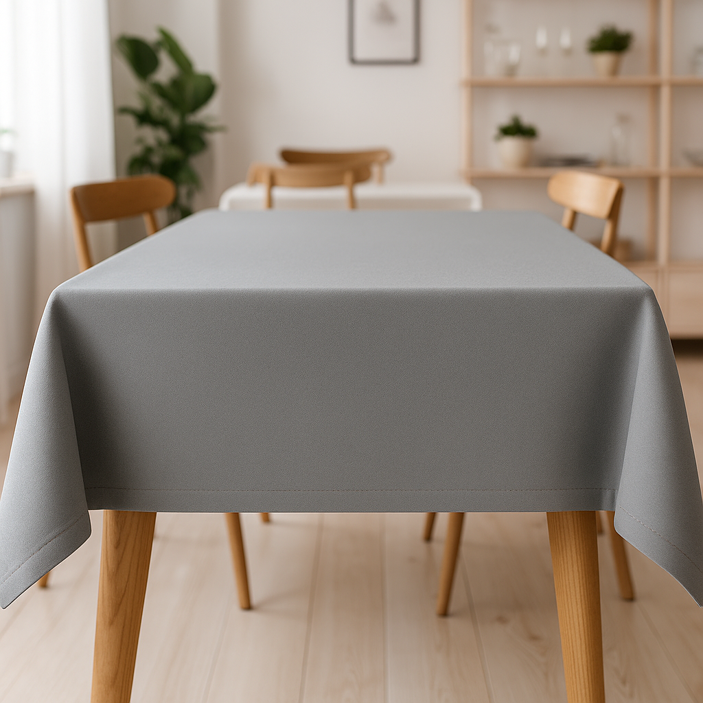 Tkanina o składzie 58% poliester i 42% bawełna ma drobny, gęsty splot i całkowicie matowe wykończenie, bez cienia połysku. Jej struktura przypomina eleganckie płótno, co nadaje obrusowi naturalny, szlachetny wygląd.