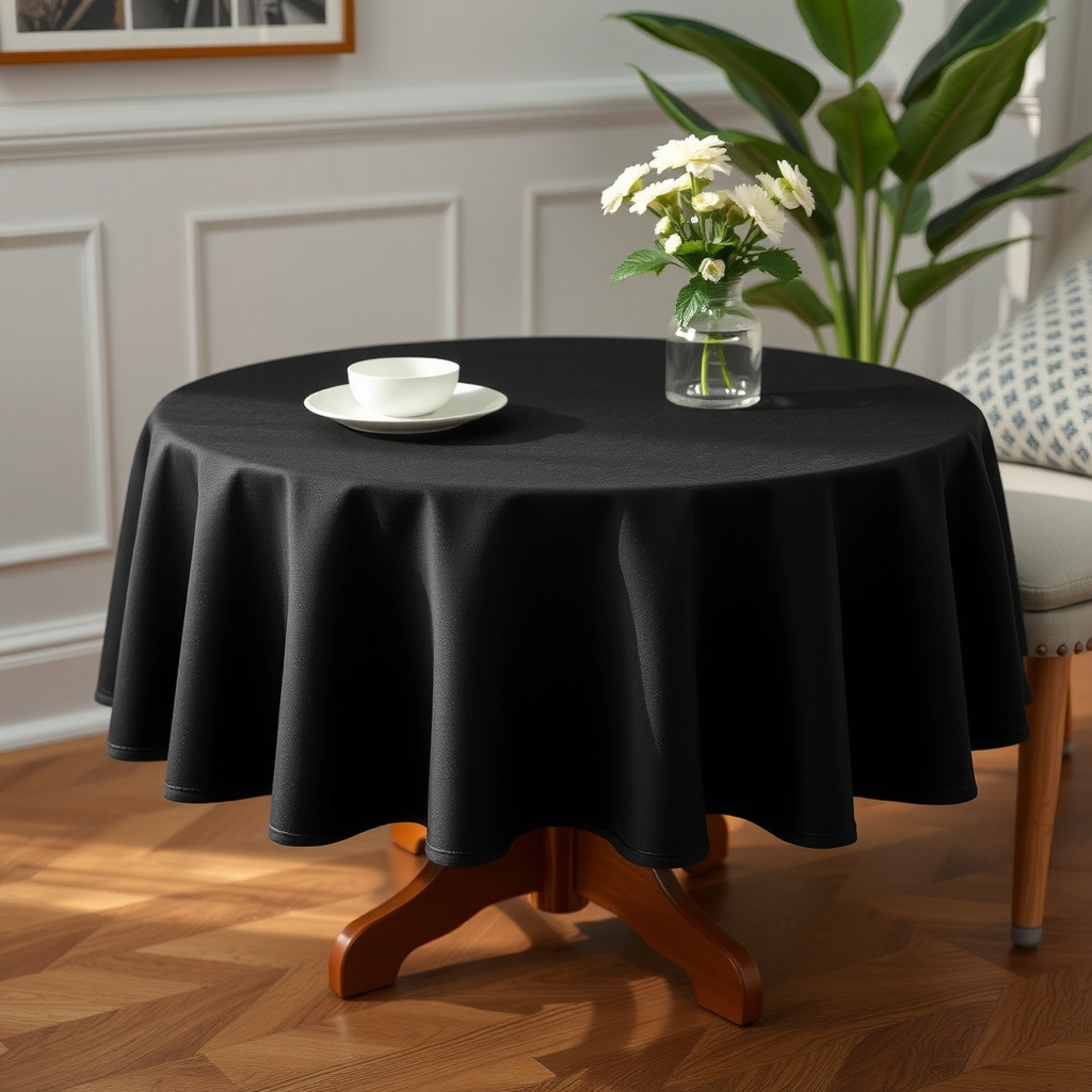 Obrus okrągły gładki jednokolorowy czarny średnica 140cm