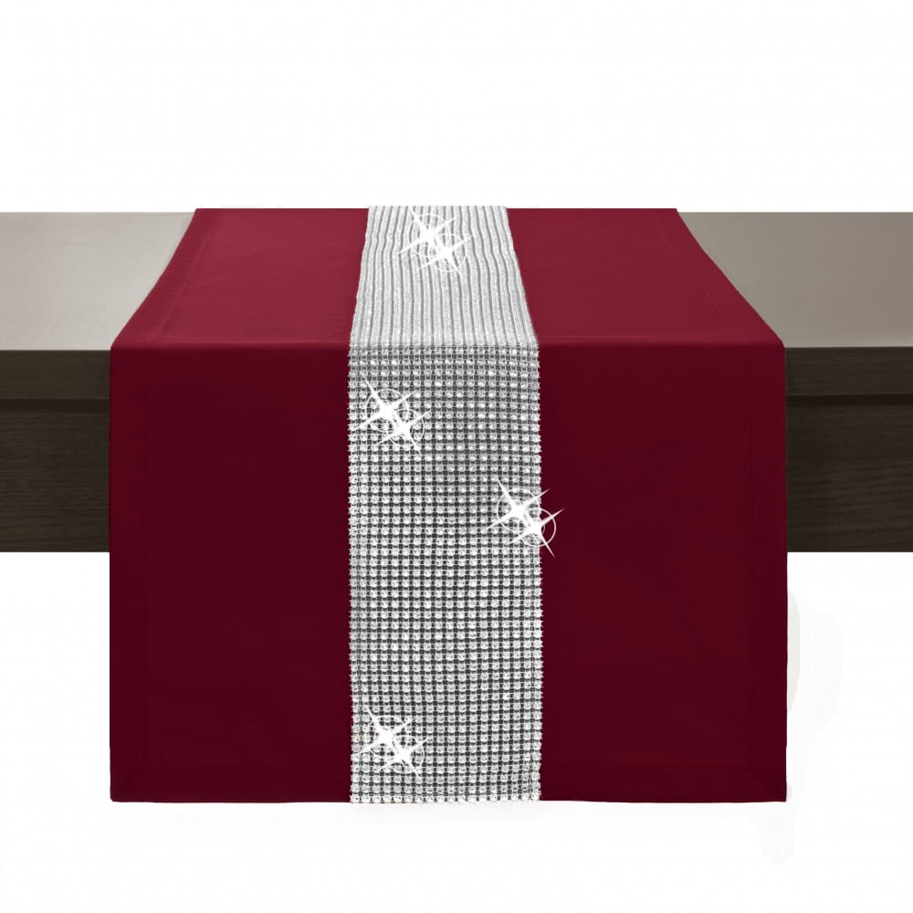 Bieżnik na stół z pasem cyrkonii bordo