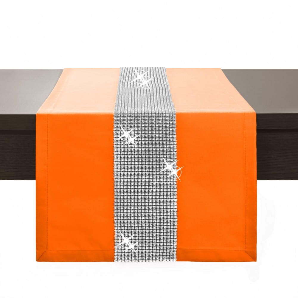 Bieżnik na stół z pasem cyrkonii pomarańczowy