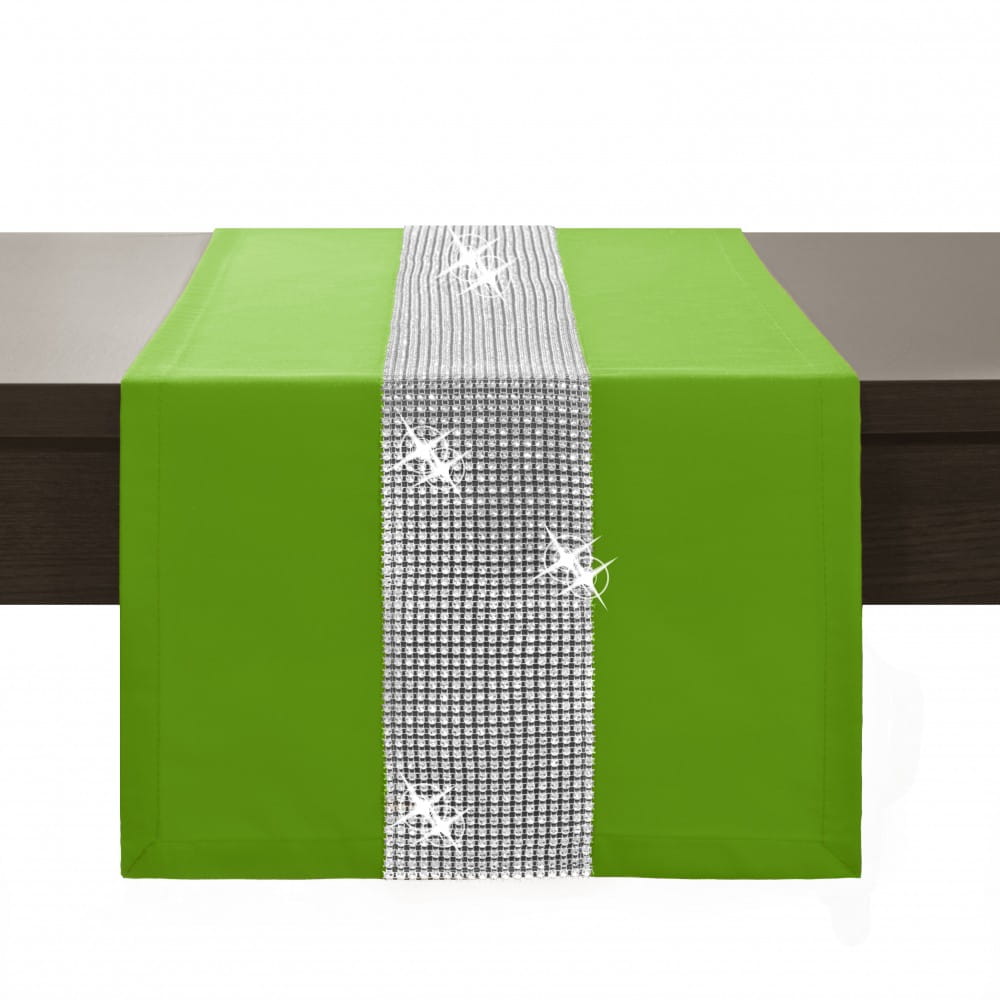 Bieżnik na stół z pasem cyrkonii zieleń trawy