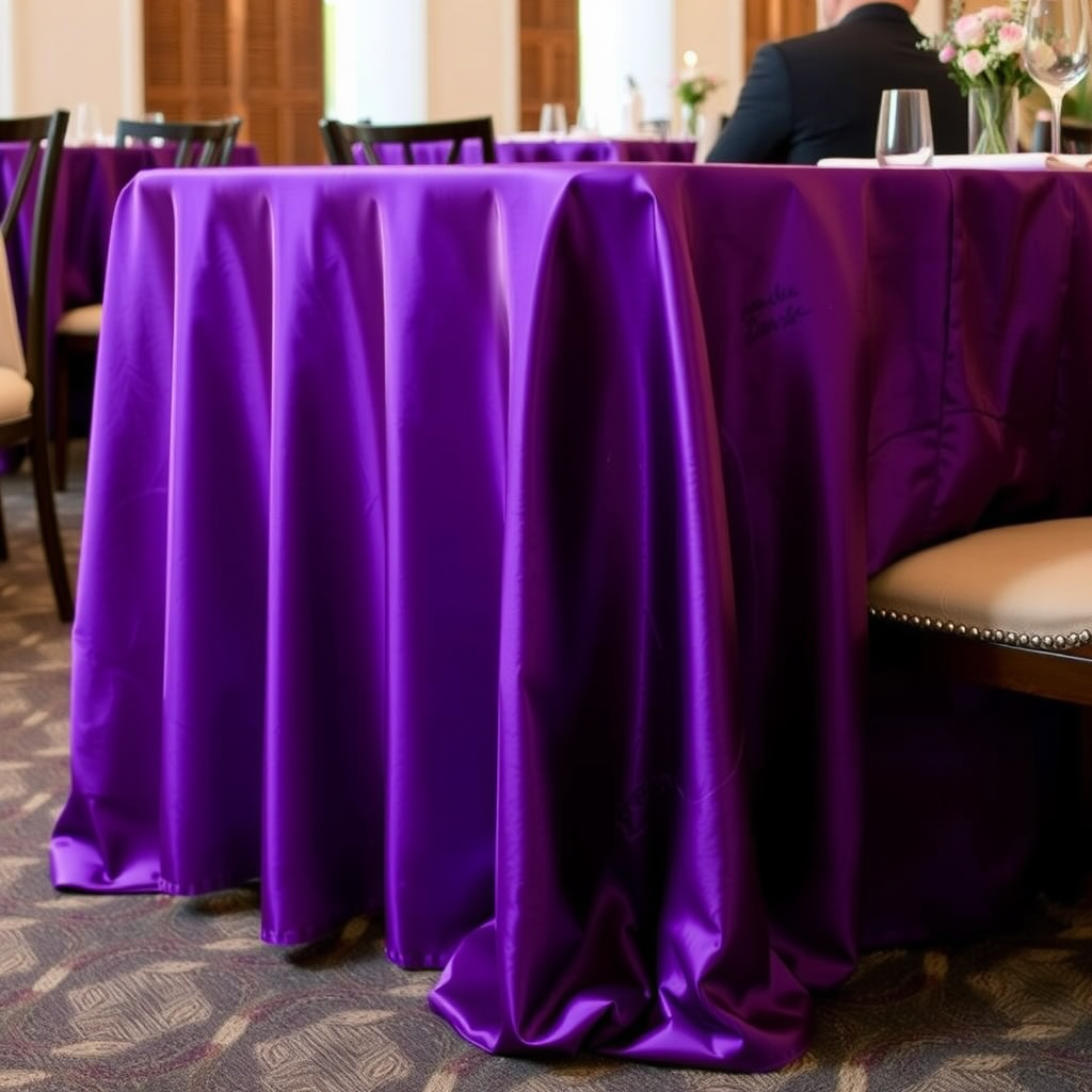 Fioletowy kolor dodaje szyku każdej aranżacji, a gładka powierzchnia materiału podkreśla nowoczesny design. Niezależnie od tego, czy organizujesz przyjęcie w domu, czy prowadzisz restaurację, obrus bankietowy spełni wszystkie Twoje oczekiwania. Wybierz trwałość, styl i wygodę – wybierz nasz fioletowy obrus plamoodporny.