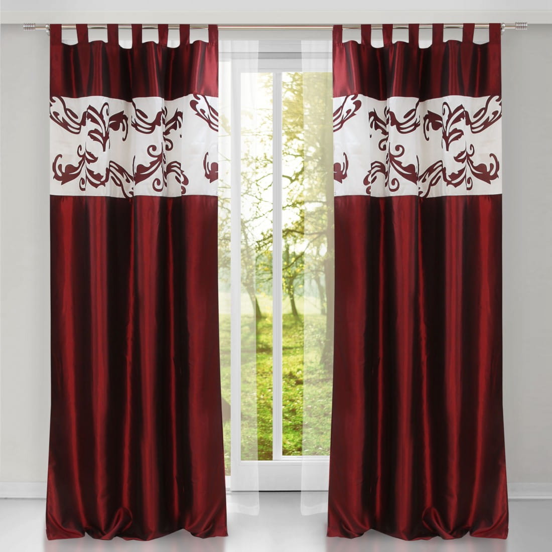 Zasłony zdobione są częściowo haftem maszynowym z ciekawymi wzorami.
