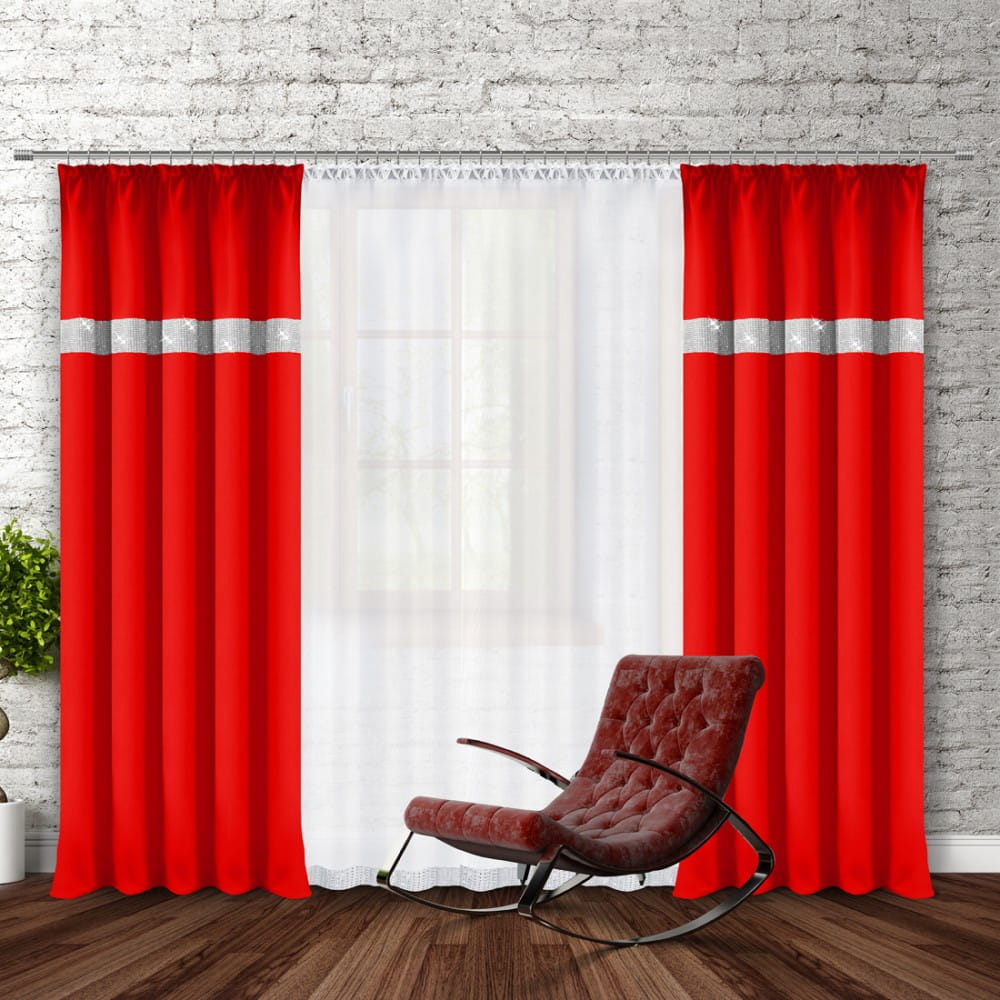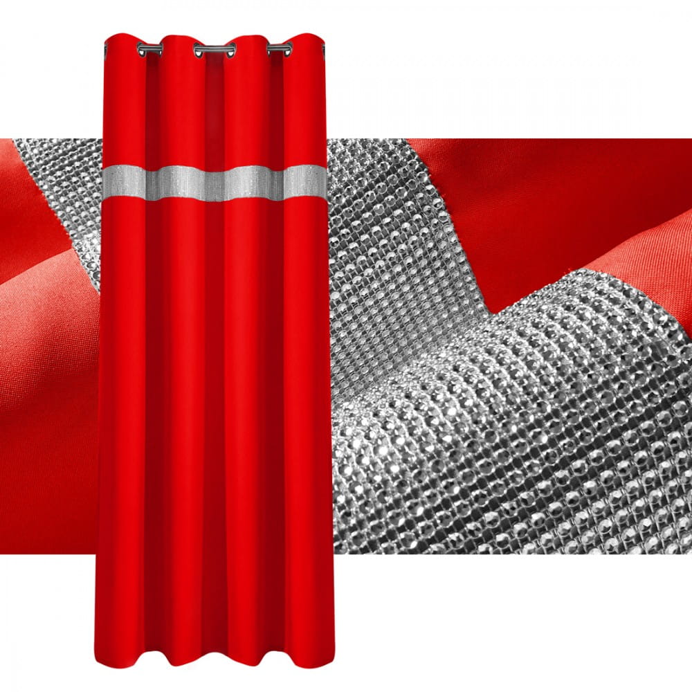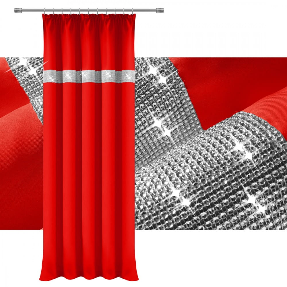 gładka zasłona w kolorze czerwonym z cyrkoniami.