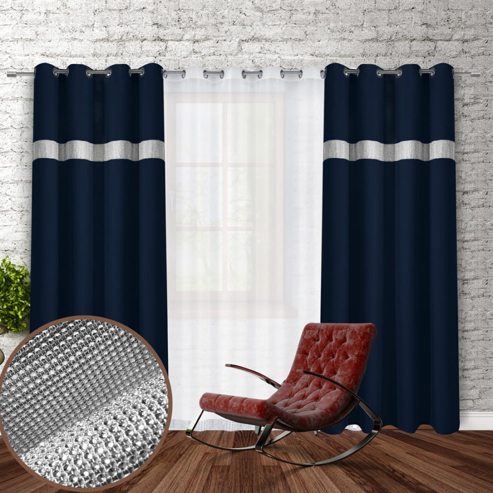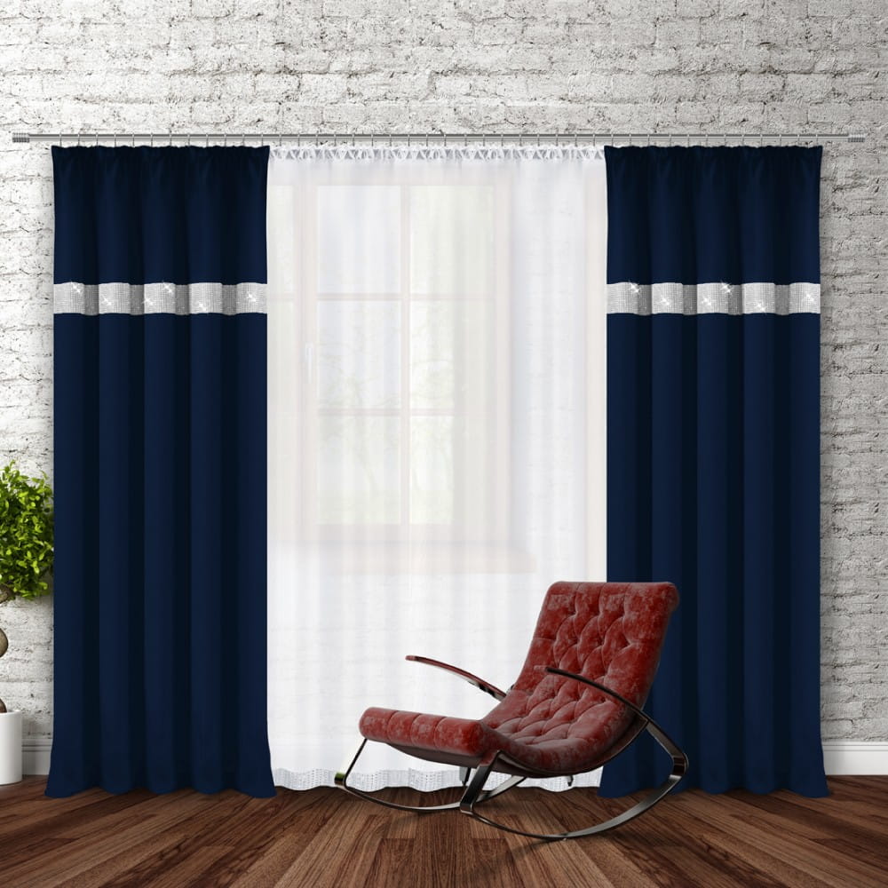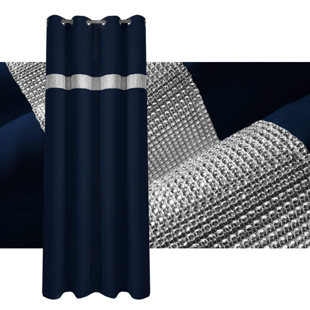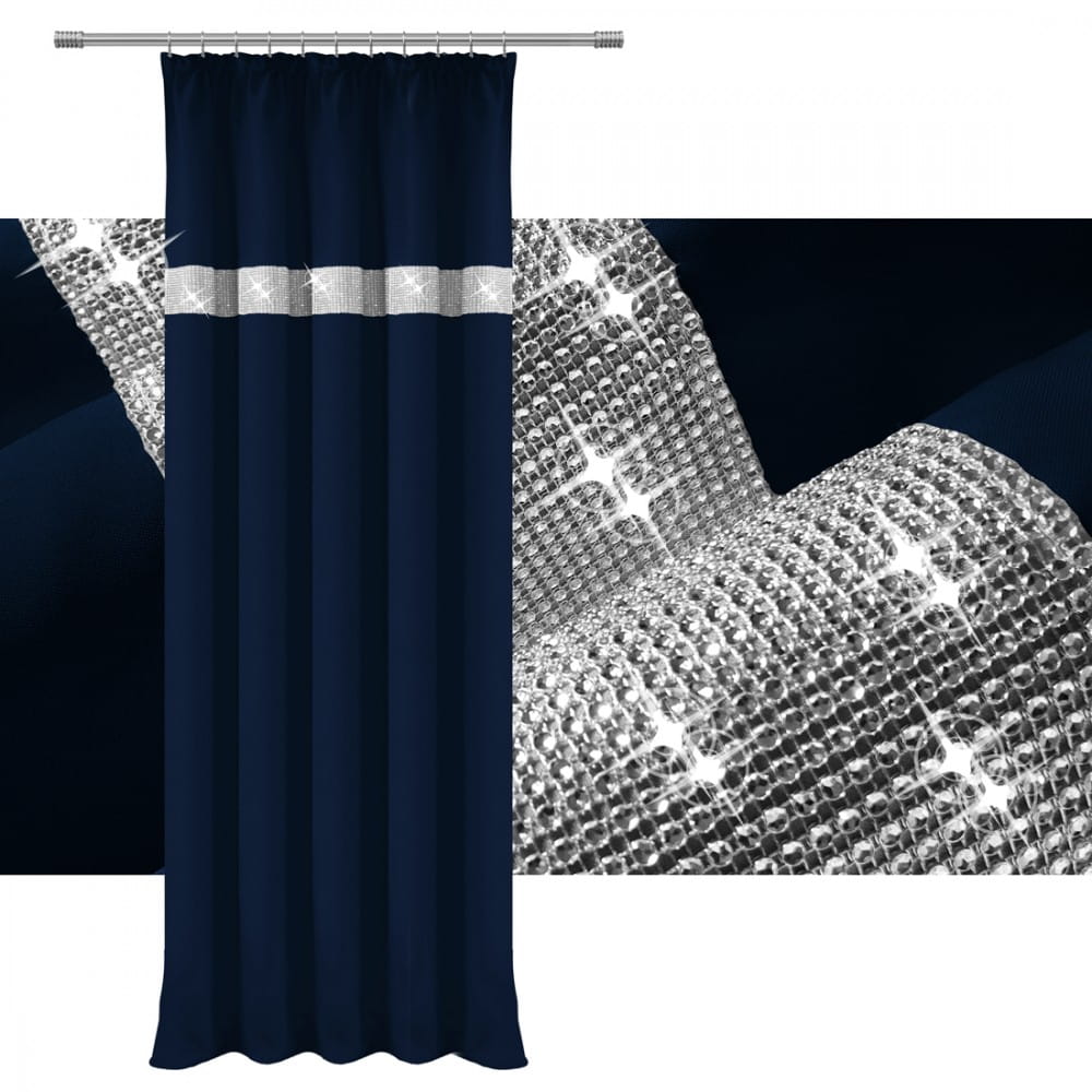 gładka zasłona w kolorze granatowy jasny z cyrkoniami