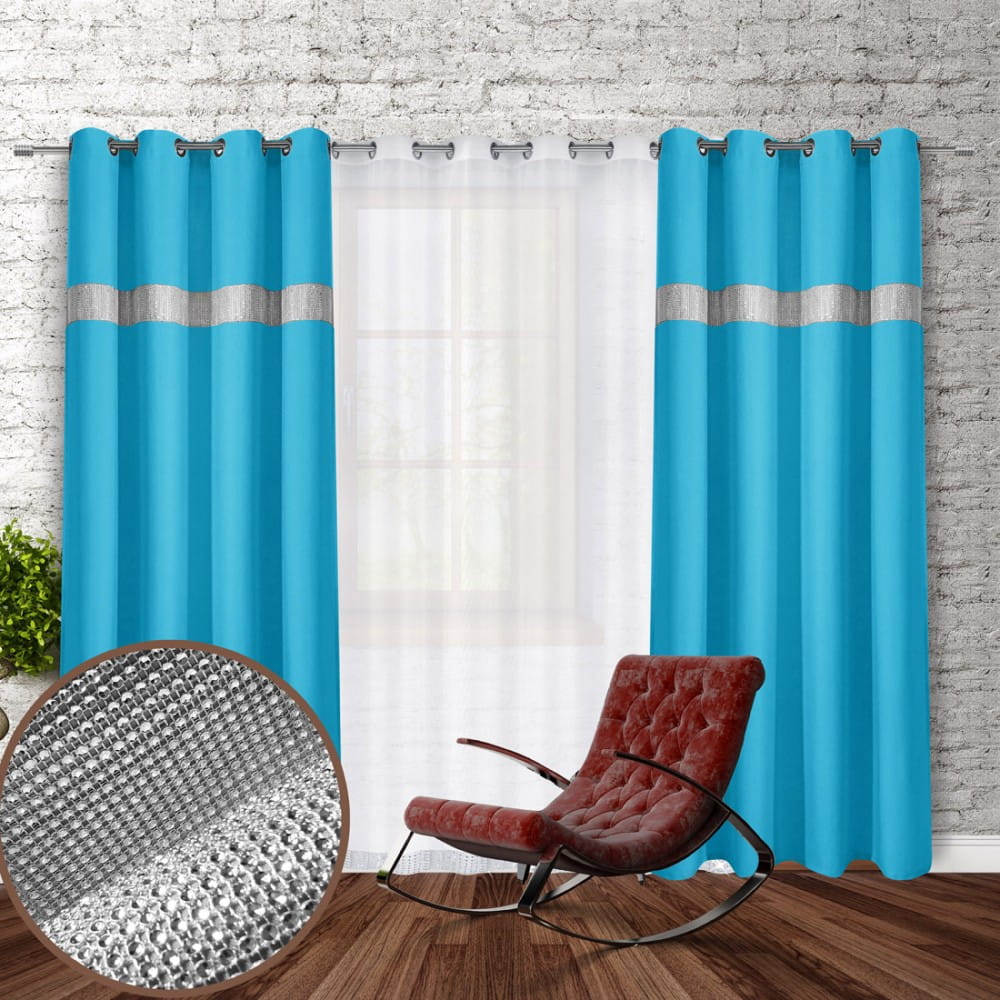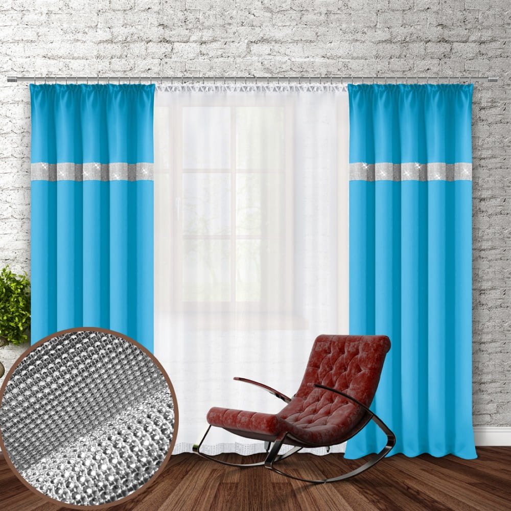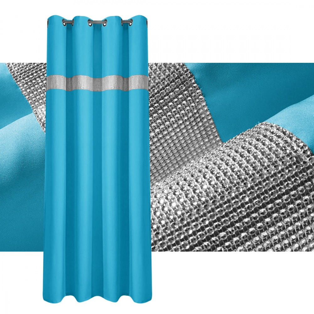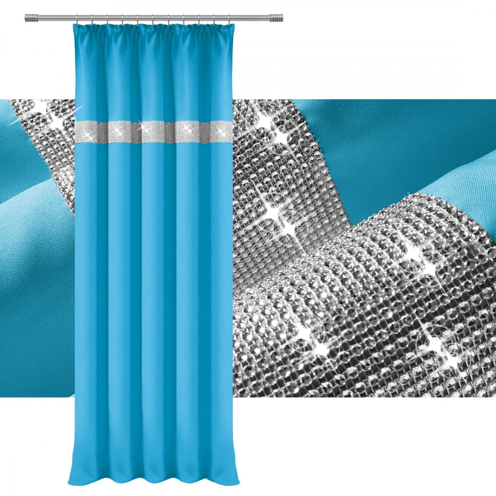 gładka zasłona w kolorze lazurowy turkus z cyrkoniami.