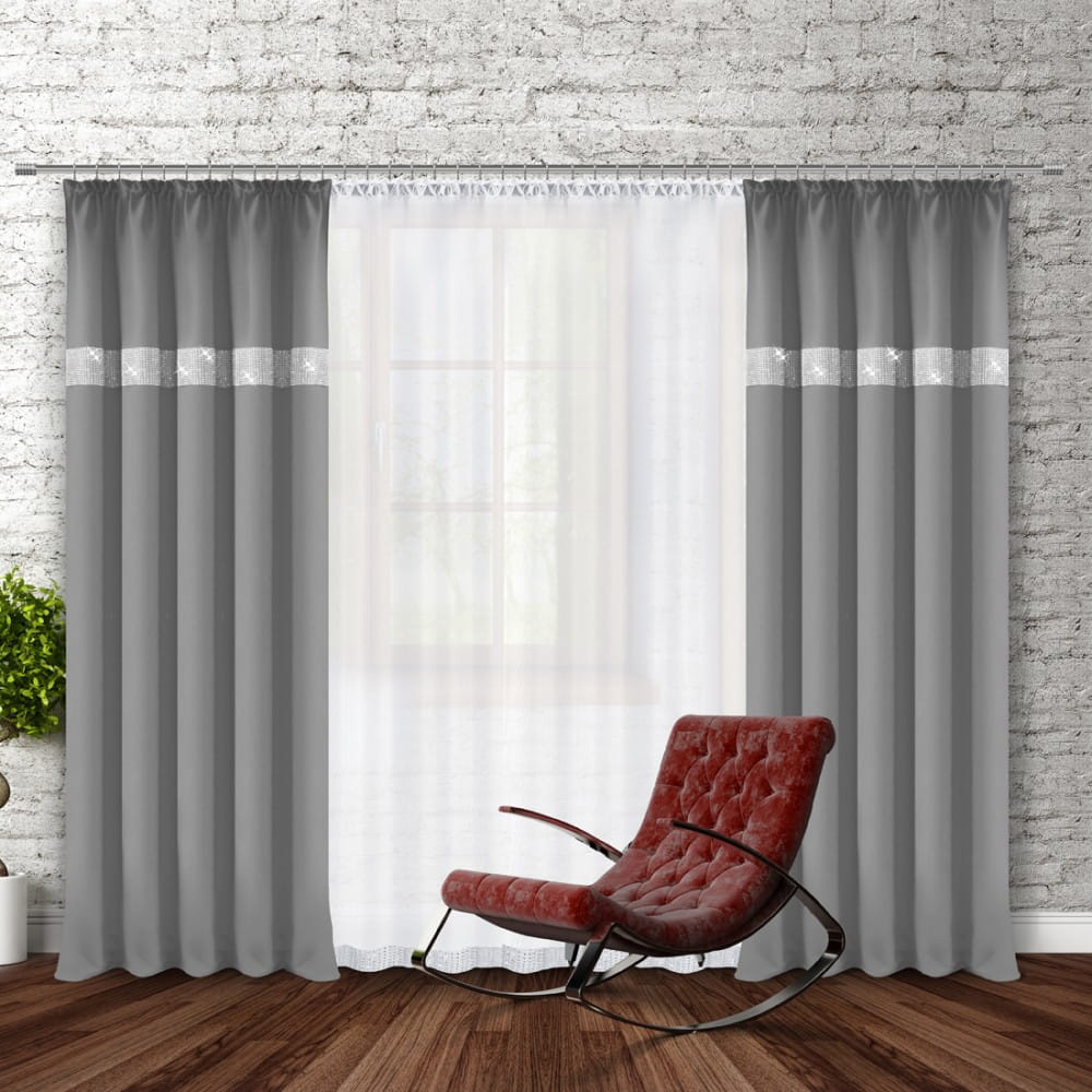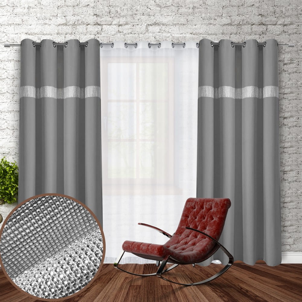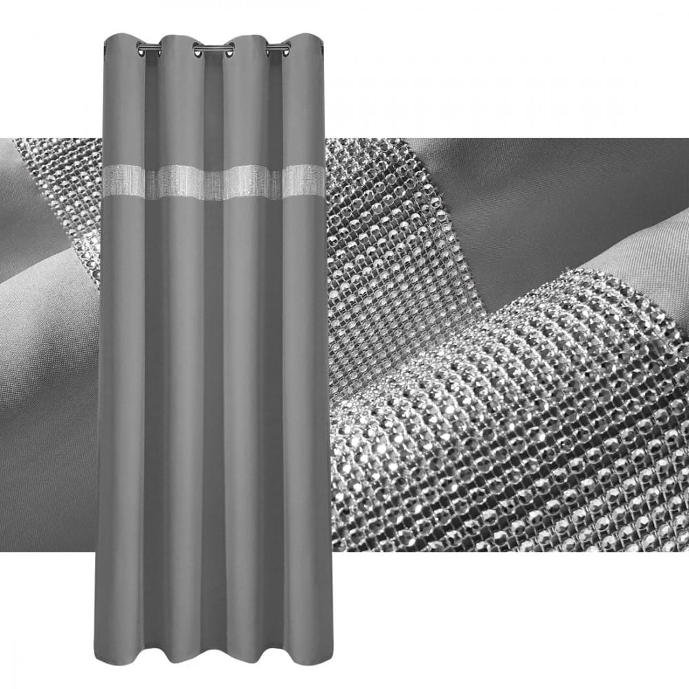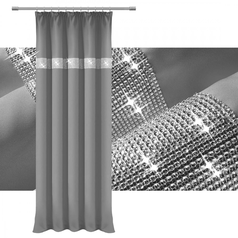 gładka zasłona w kolorze szarym ciemnym z cyrkoniami.