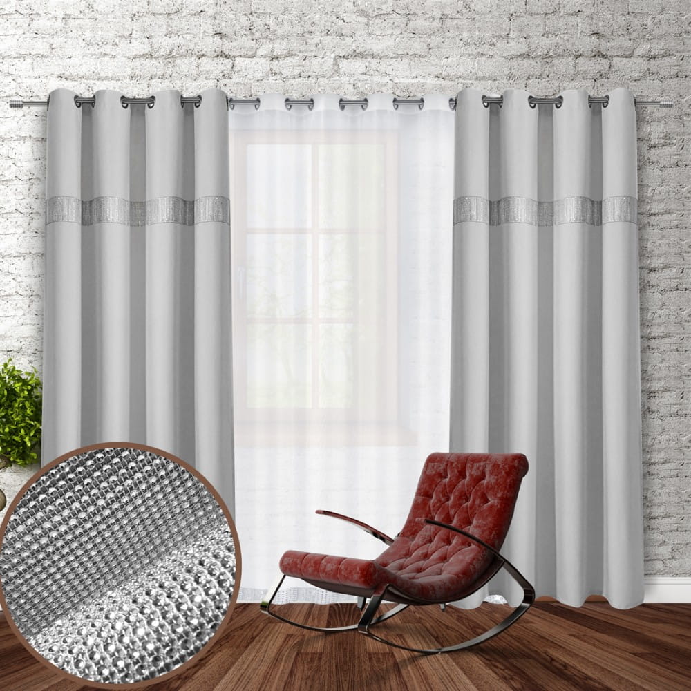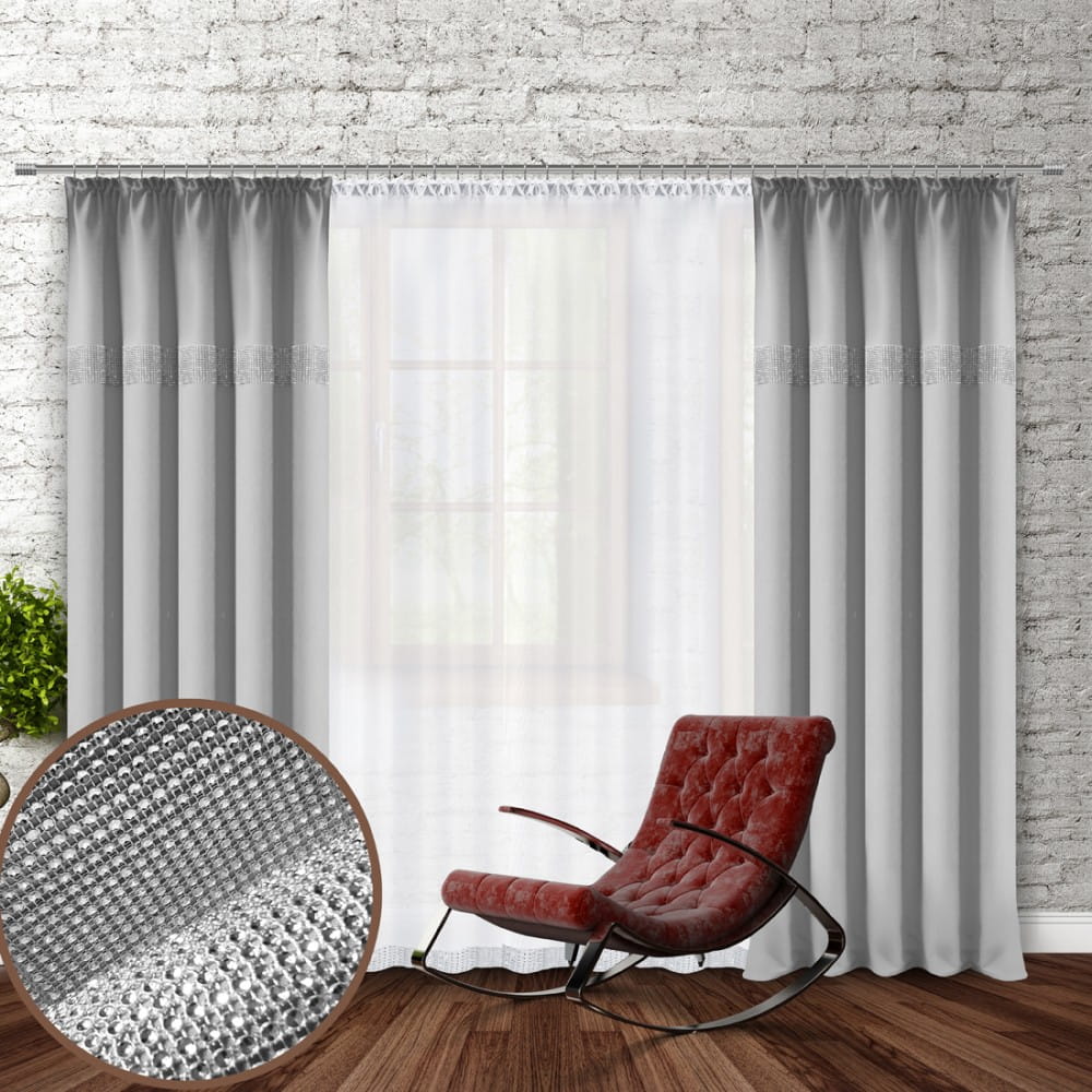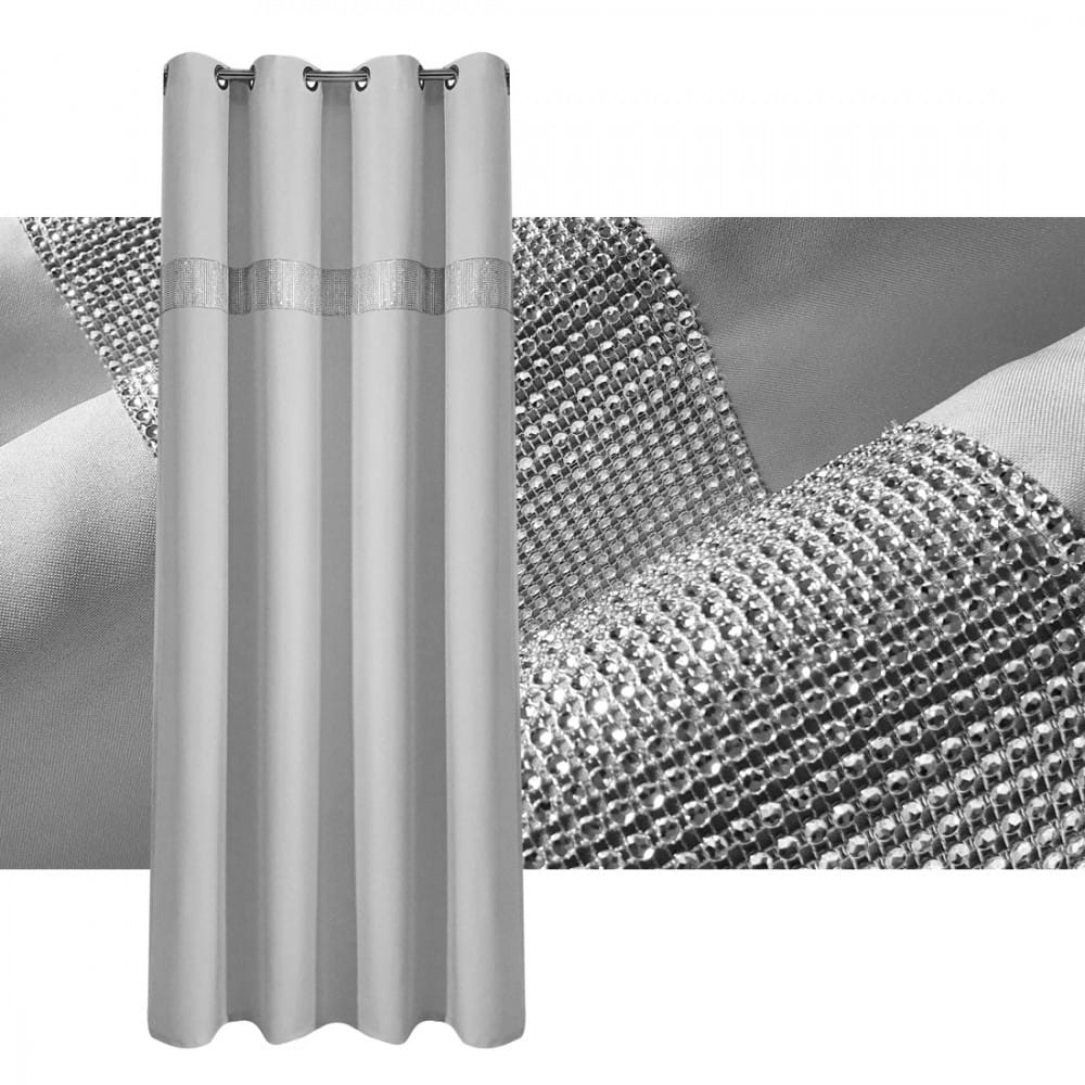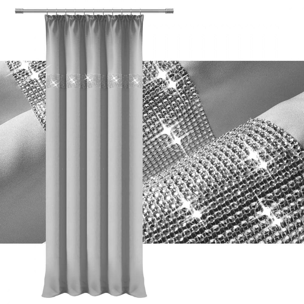 gładka zasłona w kolorze szary jasny z cyrkoniami.
