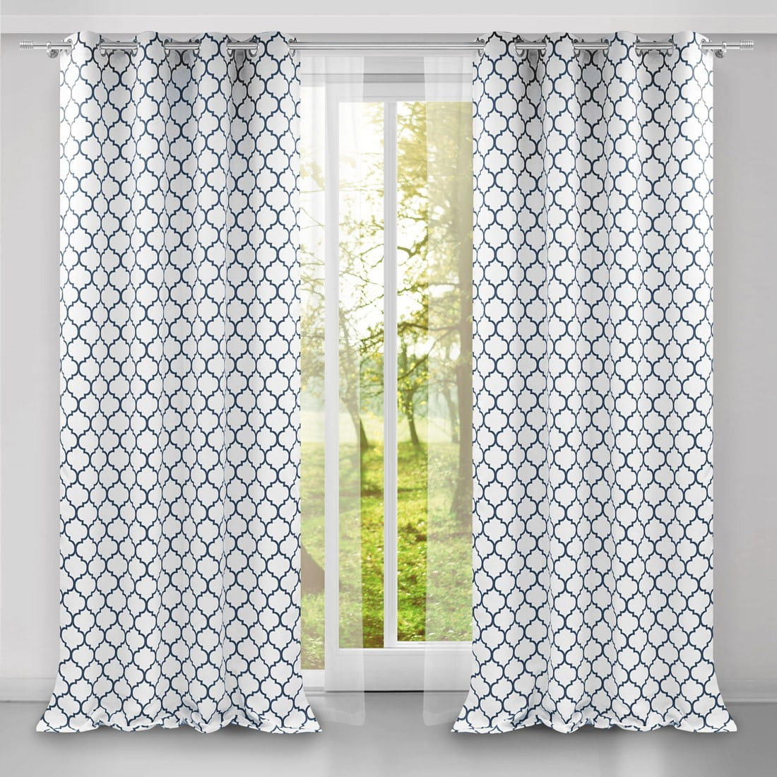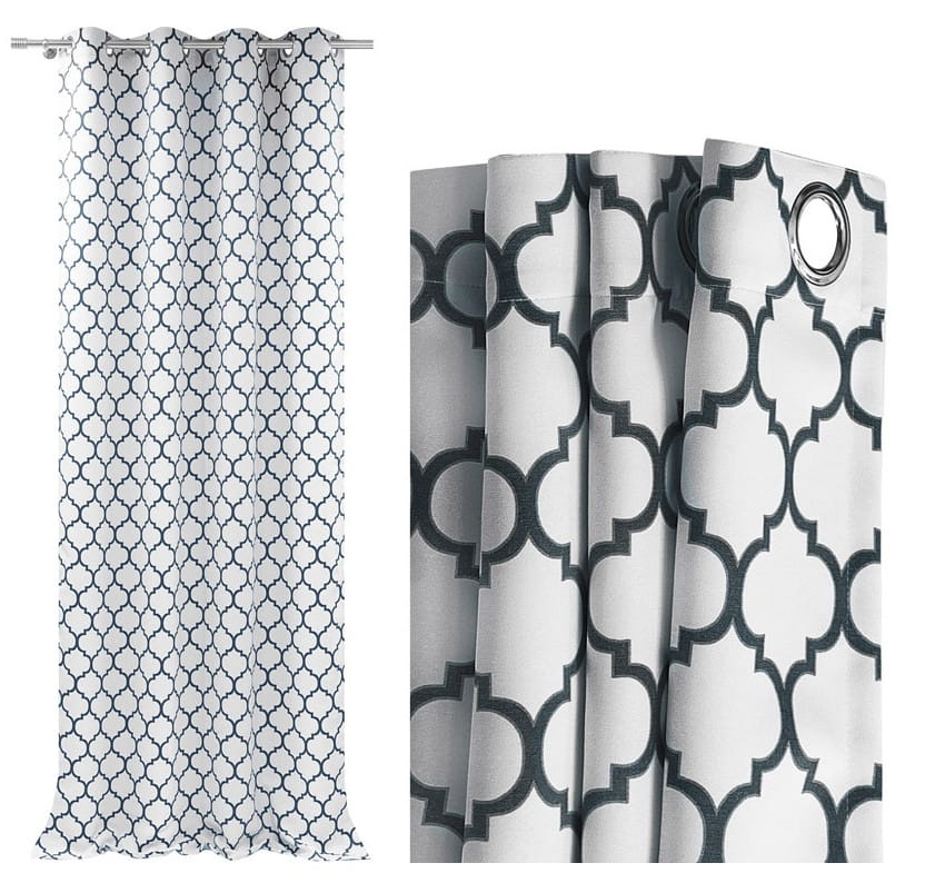Zasłona wzór marokańska koniczyna biały grafit
